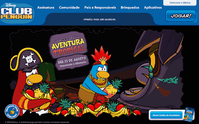 O Club Penguin atualizou as páginas Inicial e de Login, para a Aventura Tropical,